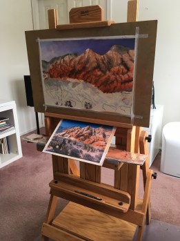 So far, I’ve managed to spend time and money on pastel painting, drawing, and watercolor painting. Pastels are best done on a substantial easel, and that became the room’s centerpiece. I wanted something sturdy that would, hopefully, last for years. I always needed a special sort of easel that would allow me to lean the artwork forward so the dust would fall from the pastel painting. Options were limited, and ultimately the decision came down to two easels, both made in the U.S.A. by BEST and distributed by Jack Richeson (of Wisconsin). I like the simplicity and lightweight design, and the price, of the Deluxe Lobo (over $200), but I wanted something more substantial, perhaps with some additional control. The answer: the Halley Easel (over $450), far sturdier and more versatile, too. If I intended to stow the easel between sessions, the Lobo would have been just fine, but the Halley seems to raise my own expectations for myself, as high-quality tools often do.