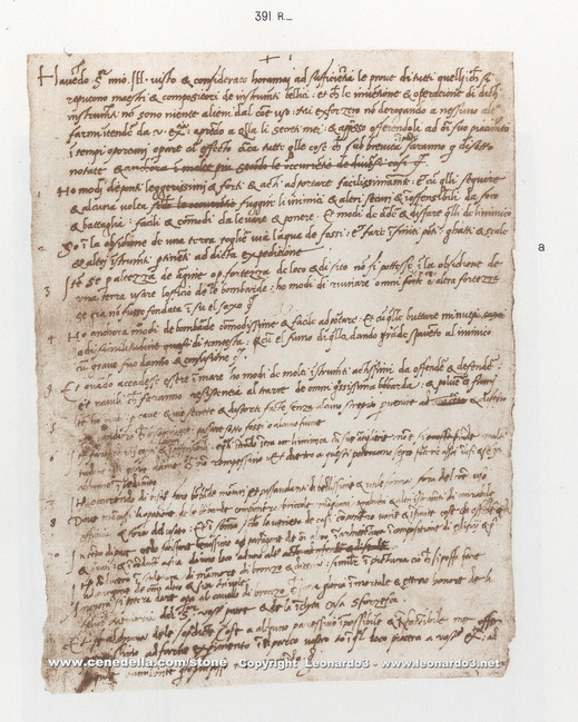 “Most Illustrious Lord, Having now sufficiently considered the specimens of all those who proclaim themselves skilled contrivers of instruments of war, and that the invention and operation of the said instruments are nothing different from those in common use: I shall endeavor, without prejudice to any one else, to explain myself to your Excellency, showing your Lordship my secret, and then offering them to your best pleasure and approbation to work with effect at opportune moments on all those things which, in part, shall be briefly noted below.